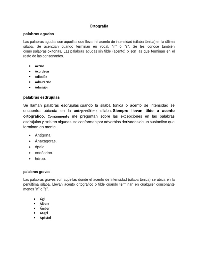El resto de las palabras en las que hacemos una inflexión más. Debes ponerles tilde si terminan en n s o vocal. Si le colocas tilde acento escrito se llaman palabras con acento ortográfico.