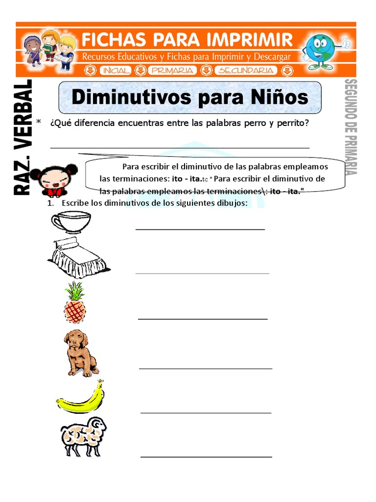 Ficha De Diminutivos Para Ninos Para Segundo De Primaria Razonamiento Verbal Verbal Primarias