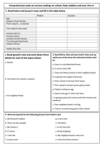 Year 7 Spanish Narrow Reading Texts With Comprehension Tasks Across Topics For Eoy Revision Teaching Resources