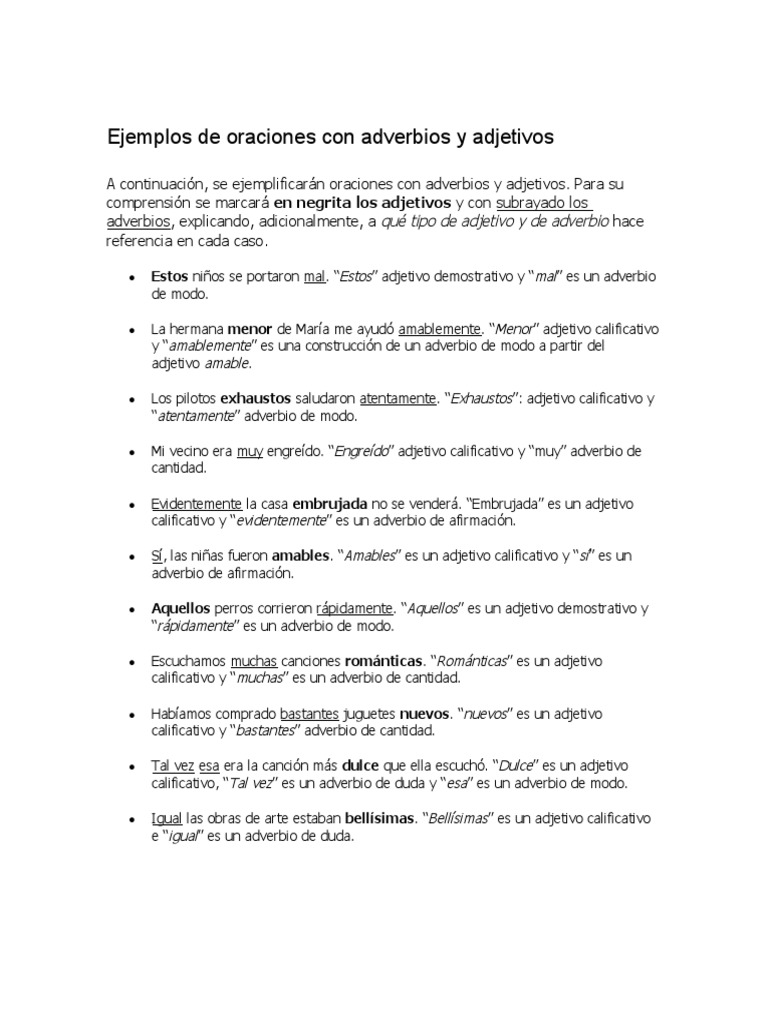 Ejemplos De Oraciones Con Adjetivos Pdf
