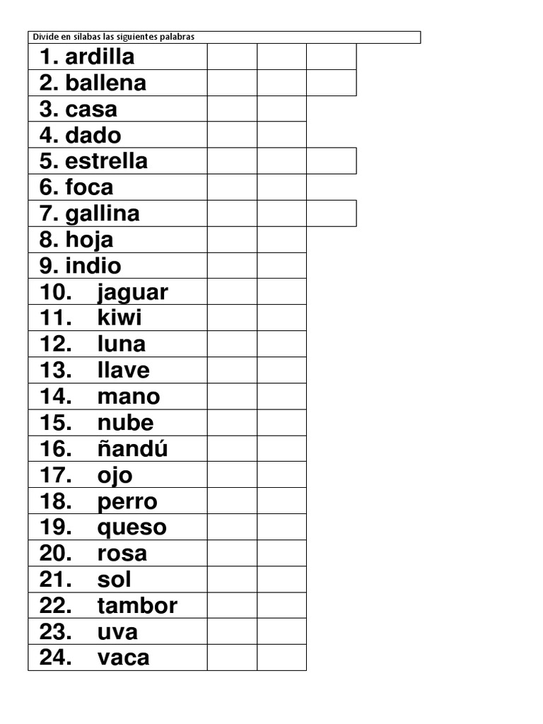 Division De Palabras En Silabas Pdf Silaba Vocal