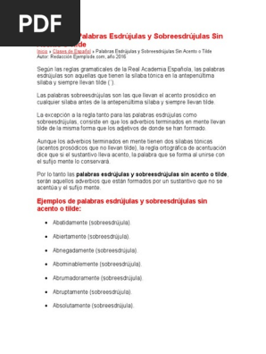 Ejemplo De Palabras Esdrujulas Y Sobreesdrujulas Sin Acento O Tilde Pdf