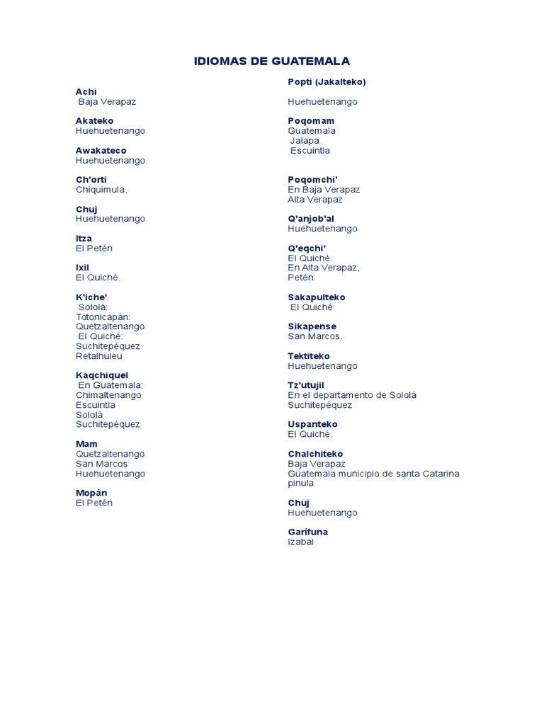Cuáles Son Los 25 Idiomas Que Se Hablan En Guatemala
