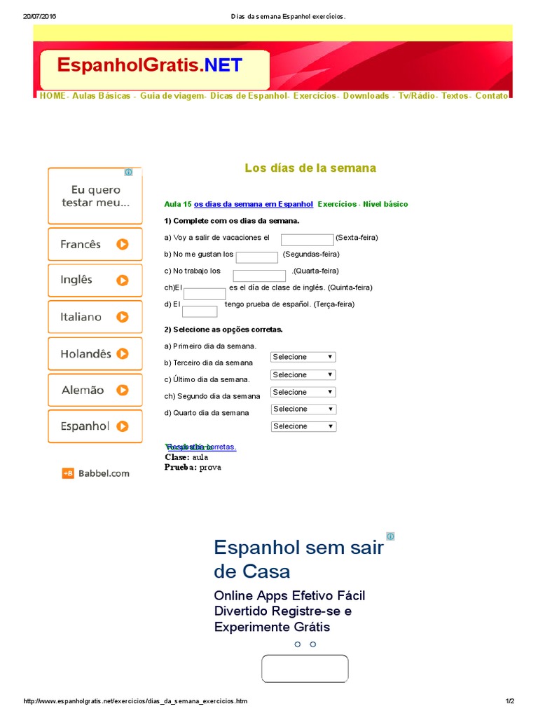 Espanhol Basico Dias Da Semana