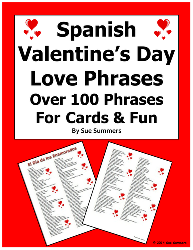 Spanish Valentine S Day Bilingual Love Phrases For Cards And Fun Teaching Resources