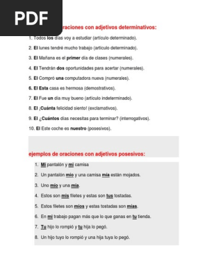 Ejemplos De Oraciones Con Adjetivos Determinativos Pdf
