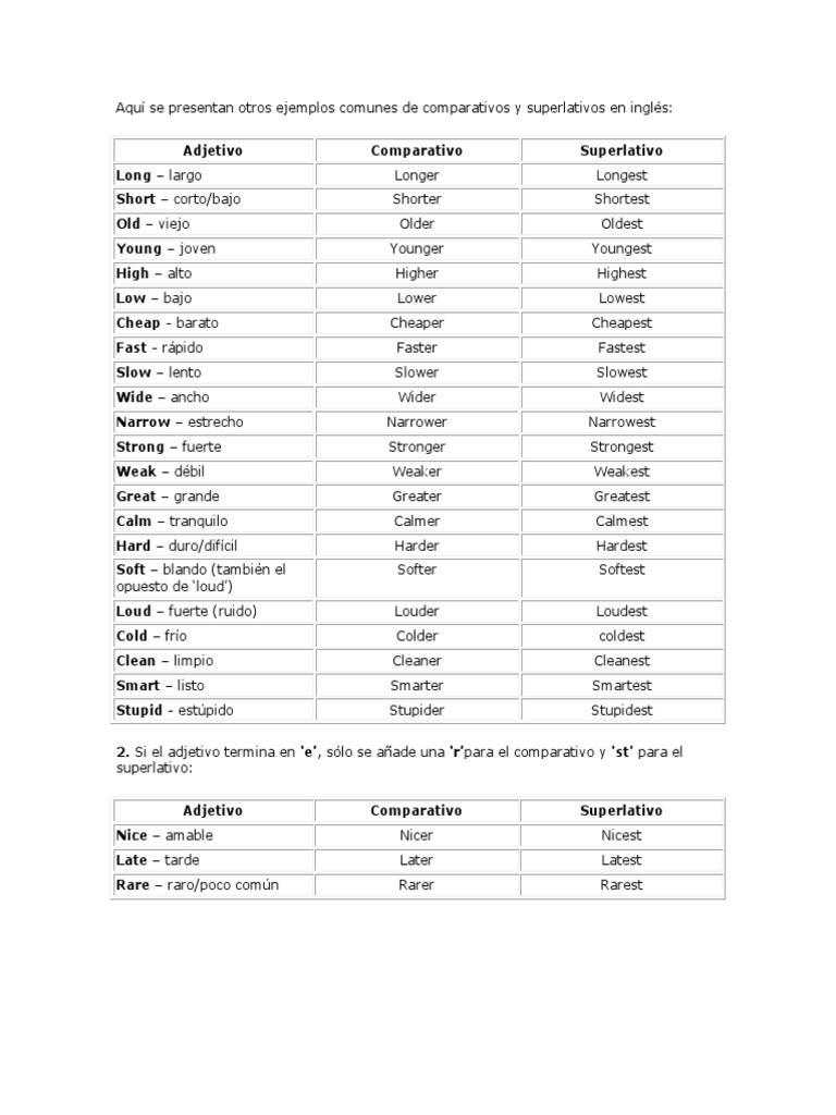 Lista De Comparativos Y Superlativos Eingleses