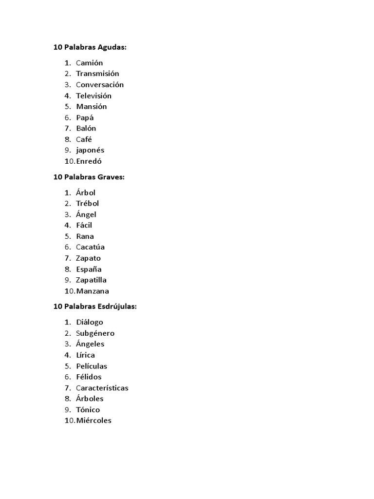 10 Palabras Agudas Graves Esdrujulas Y Oraciones Pdf