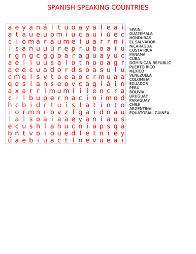 Spanish Speaking Countries Word Search Pdf