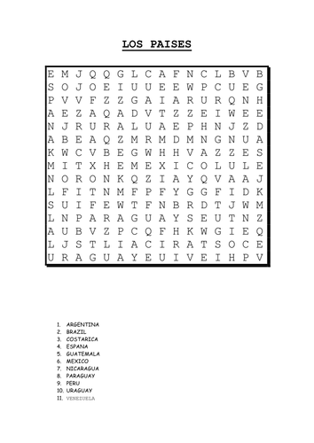 Download Word Search On Spanish Speaking Countries