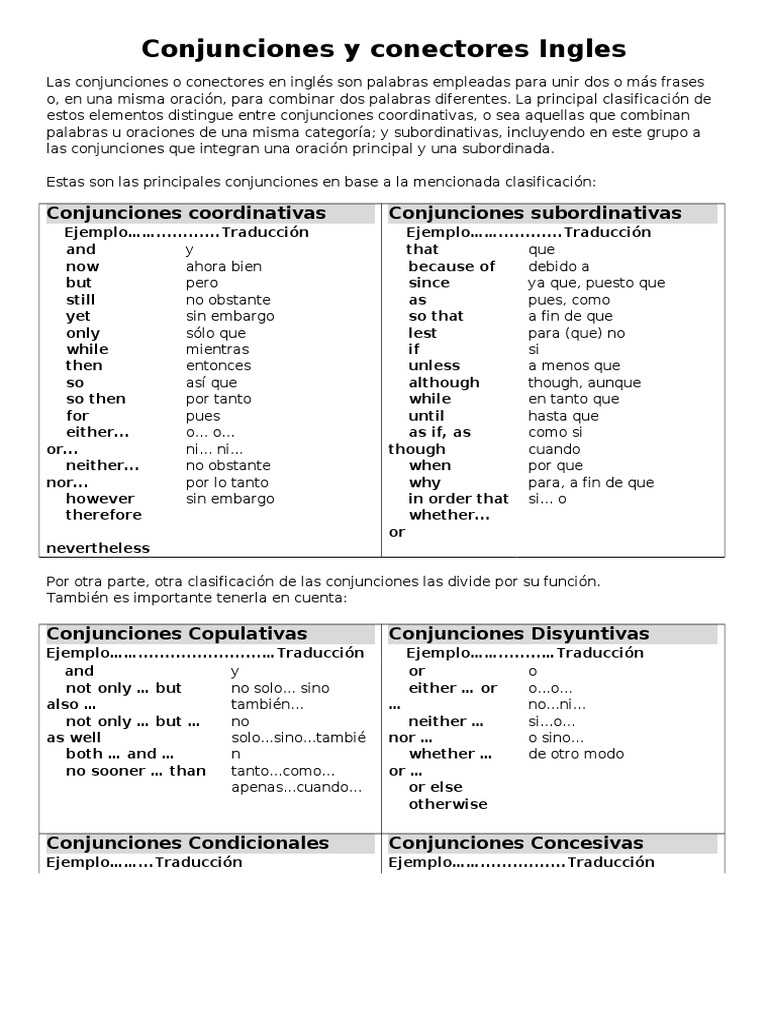 Listado De Conjunciones En Espanol Pdf