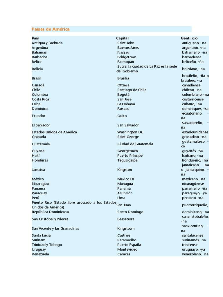 Gentilicios De Paises America Pdf Americas