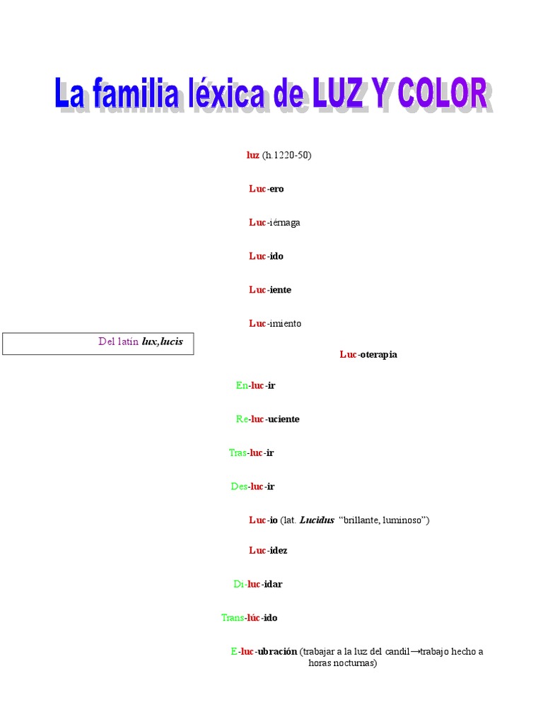 Familia de Palabras de Color. Palabras Derivadas de Color.