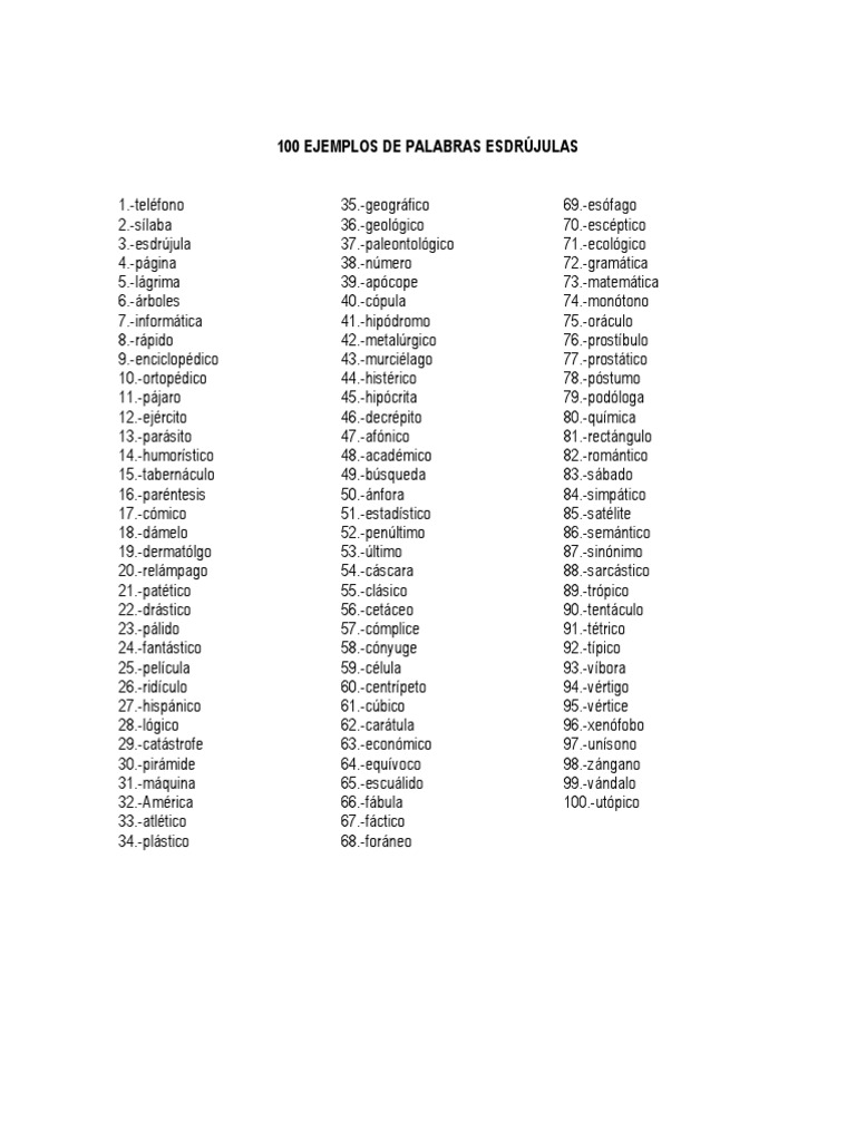 100 Palabras Esdrujulas Separadas En Silabas