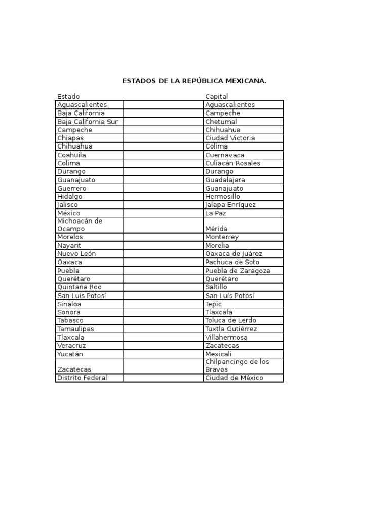 Estados De La Republica Mexicana Capitales Pdf Mexico Asociacion De Futbol