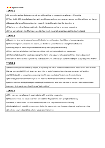 Aqa A2 Spanish Translation Spanish To English Teaching Resources