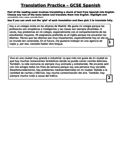 Gcse Spanish Translation Practice Homework Cover Work Revision Teaching Resources