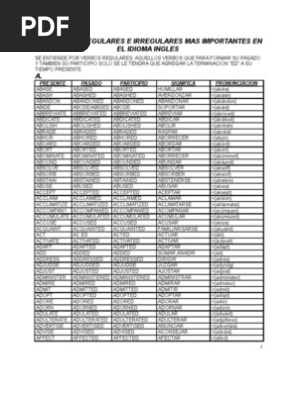 Tabla De Verbos Regulares E Irregulares En Ingles Pdf Imagui