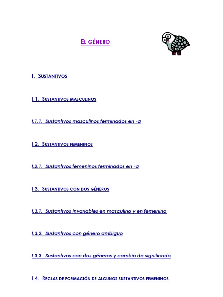 Sustamtivo Genero Gramatical Sustantivo