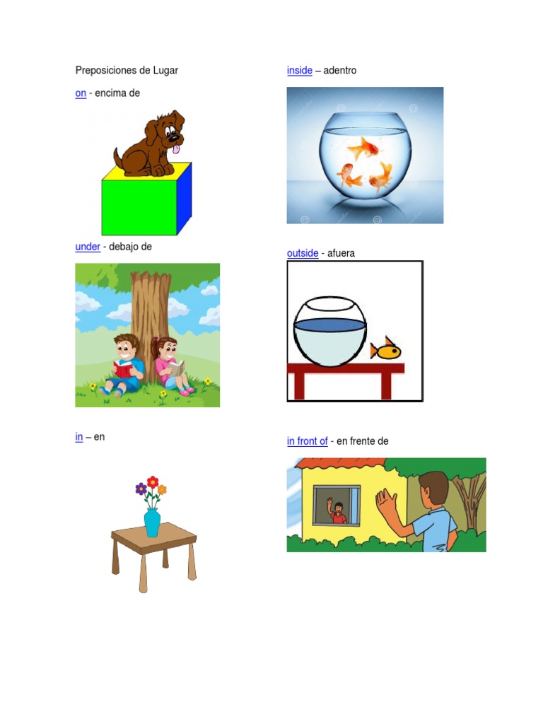Preposiciones De Lugar En Ingles Ilustrados