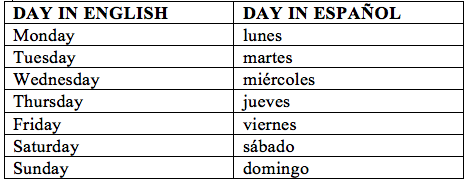 Que Es Days Of The Week En Español