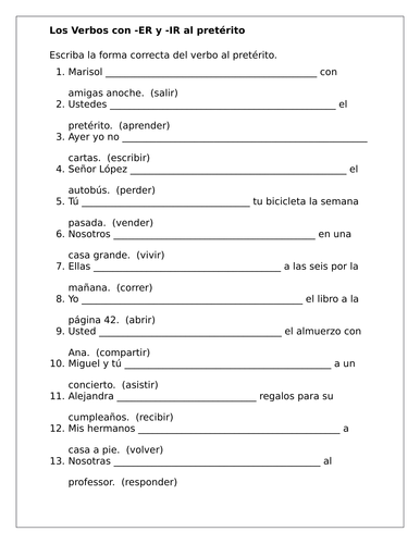 Preterito Er Verbs Ir Verbs In Spanish Verbos Er Ir Worksheet Teaching Resources